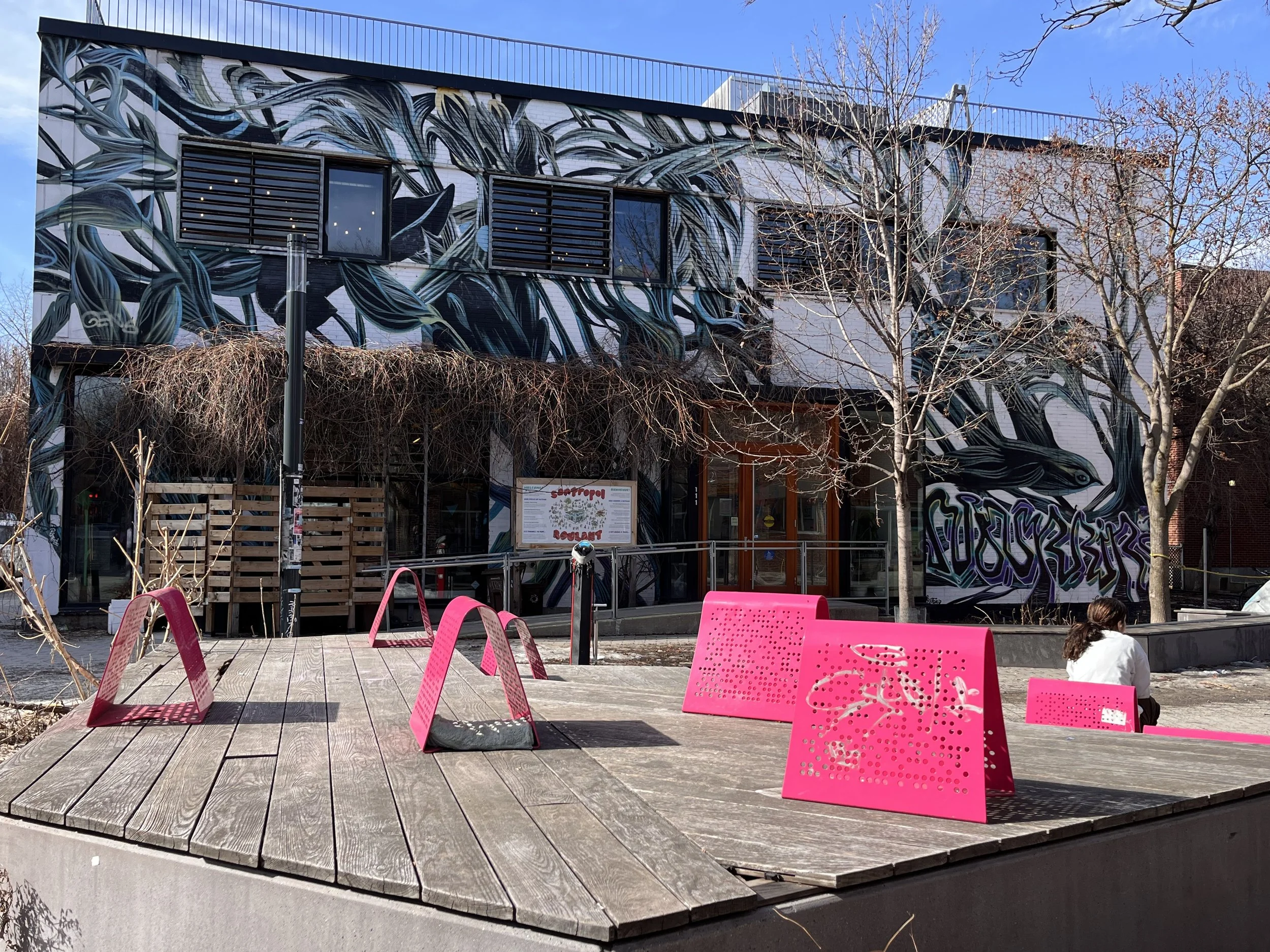 In 2026, the Santropol Café and the Housing Coop will celebrate their 50th anniversary. Their offspring, so to speak, Le Santropol roulant has been delivering nutritious low-cost or free meals-on-wheels for 40 years. “Le Roulant” as it is called is a thriving center of inter-generational community activities, a fountainhead of projects for a sustainable future. A dynamic young crew of le Roulant are teaching children and unhoused people how to grow food. Under the leadership of elder nun Soeur Nicole Gaudet, children cut flowers in the Hôtel-Dieu Convent’s spectacular walled garden for distribution to meals-on-wheels recipients.